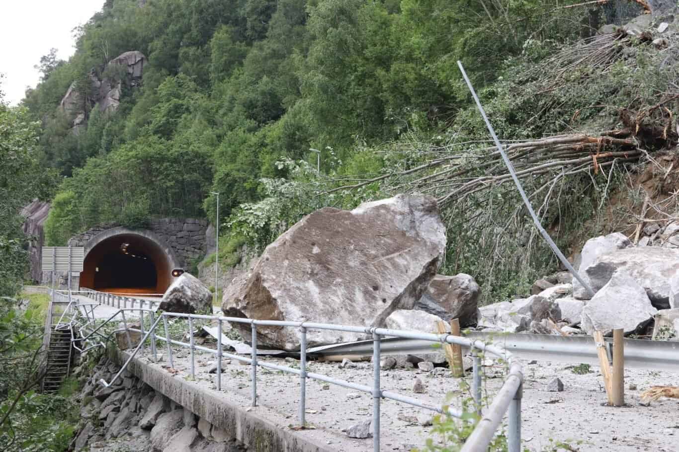 Samstundes rasar det på fleire vegar. Eit steinras gjekk over riksveg 13 heilt sør i Ullensvang nær grensa til Suldal om natta 3.-4. juli etter hard nedbør.