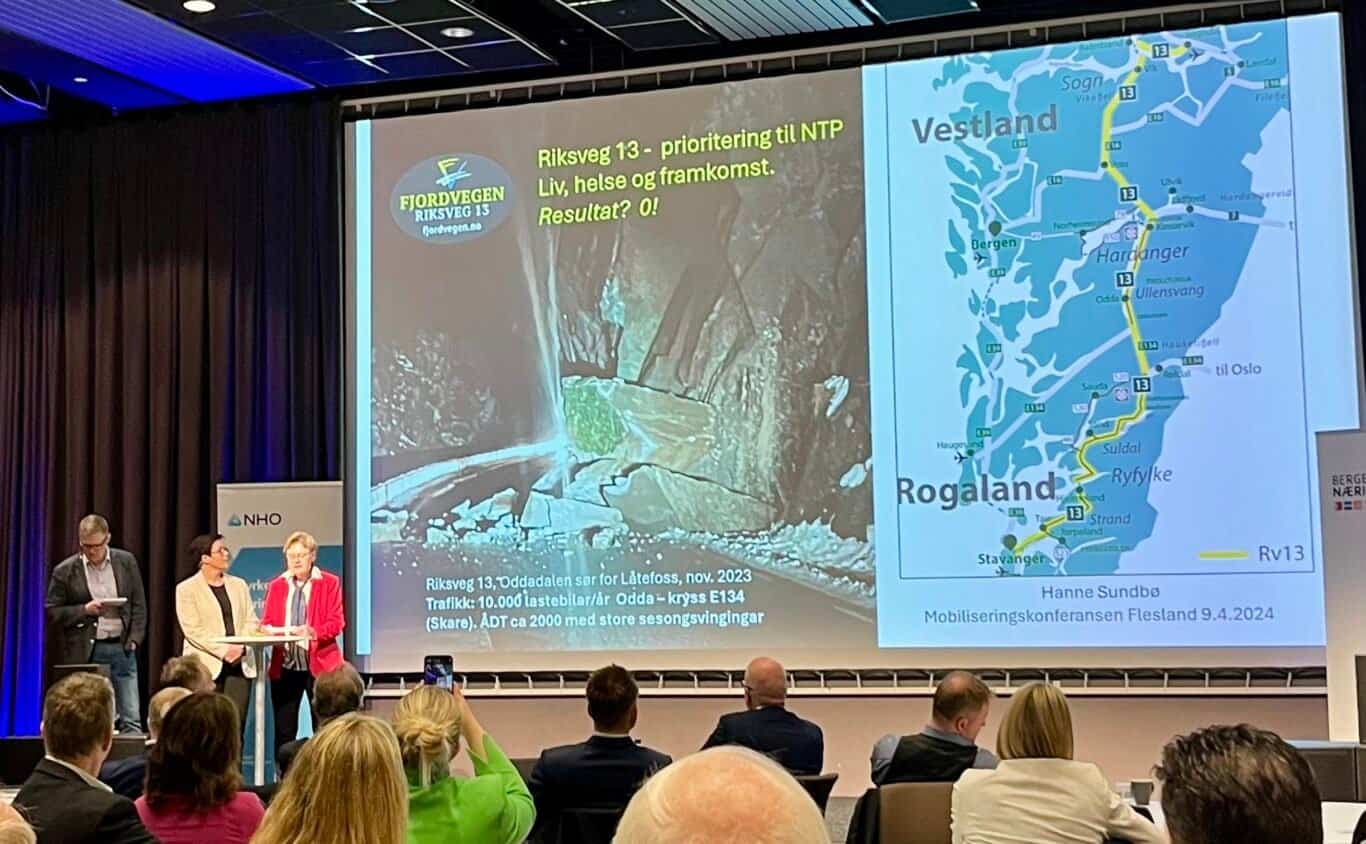 Fjordvegen deltok på Mobiliseringskonferansen på Flesland for heile vestlandet 9. april og hadde felles innlegg saman med Haukelivegen/E134 og industribedrifta Boliden Odda.