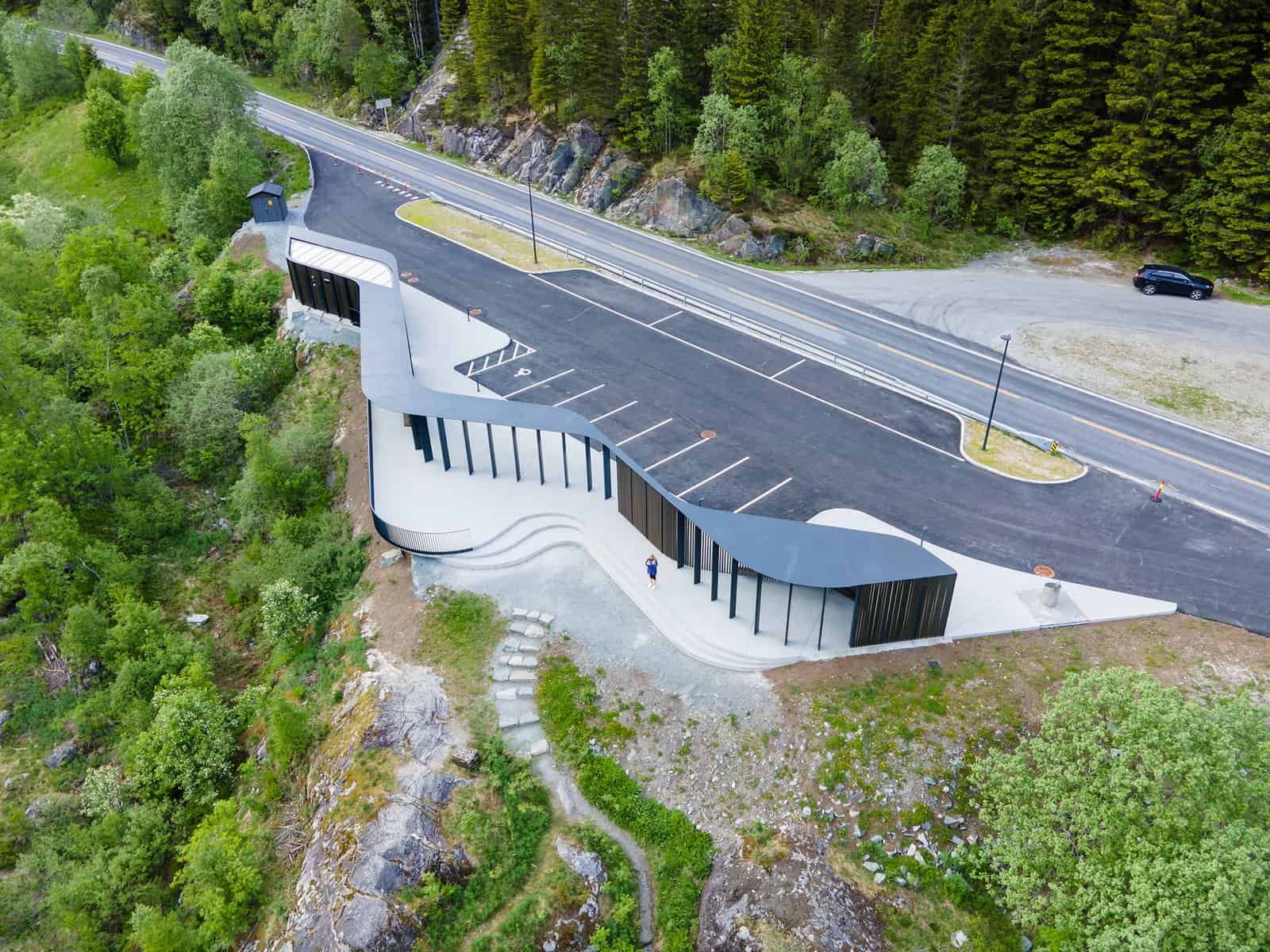Flesefossen rasteplass i Brattlandsdalen i Suldal, Nasjonal turistveg Ryfylke. Foto: Frid-Jorunn Stabell, Statens vegvesen