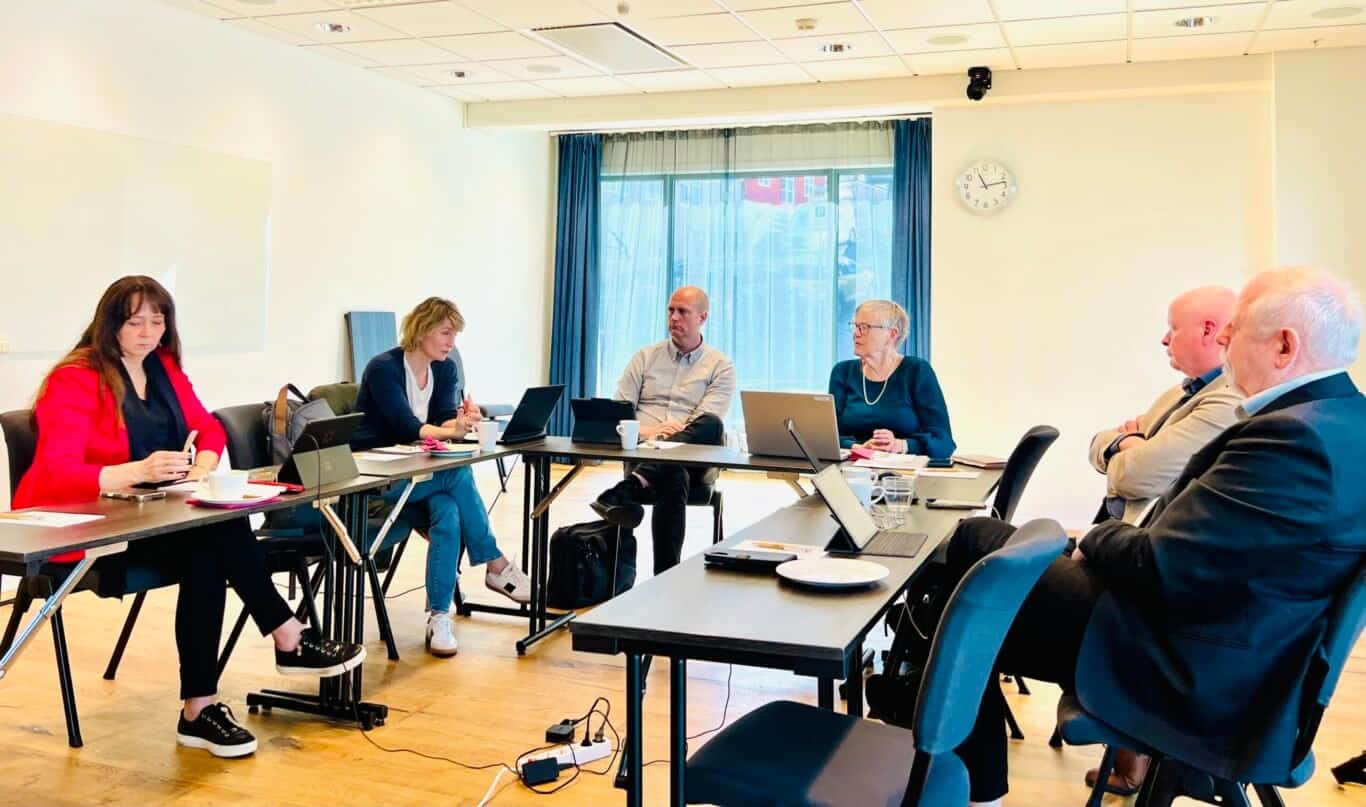 Bilde frå styremøte 03.04.2025 i Stavanger: Frå venstre: Ann Irene Myrheim- dagleg leiar, Marthe Hammer, Olav Lindseth, Marta Sofie Vange – styreleiar, Ingvald Torblå og Kristoffer Amdal.